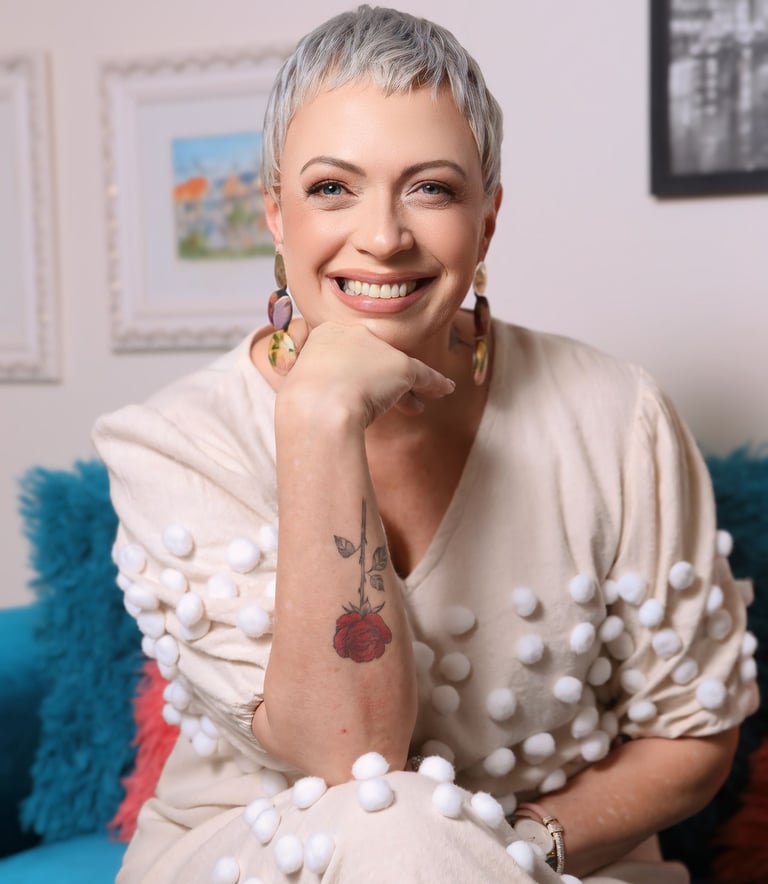 “Antes de ensinar outras mulheres a se posicionarem com clareza, eu precisei fazer esse caminho por mim mesma. Sou comunicóloga comportamental com mais de 25 anos de estudo, prática e transformação de imagem e posicionamento, começando pela minha.”